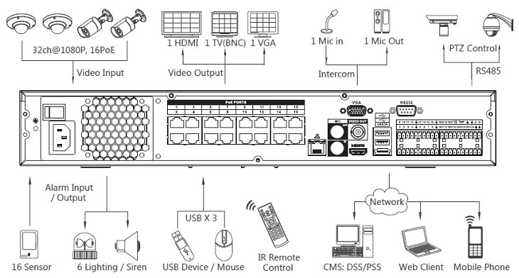 Sync Playback 1/4/8/16(NVR-416R-16P), 1/4/8/16(NVR-432R-16P), 1/4/8/16(NVR-464R-16P)